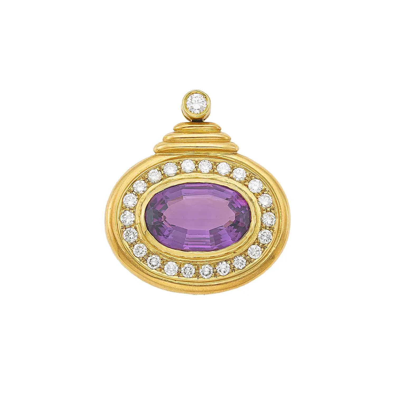 18K Gold Amethyst & Diamond Pendant — Amethyst ~11.60 cts; Diamonds ~2.40 cts